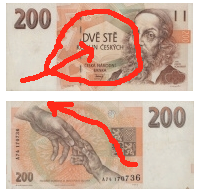 I Česká koruna to přiznává. Výborně to jde vidět na dvoustovce, kde J.A. Komenský hlídá bezednou šestihrannou díru, naznačenou na pozadí. Na druhé straně bankovky vidíte spojené ruce, což je symbolické vyjádření mostu.